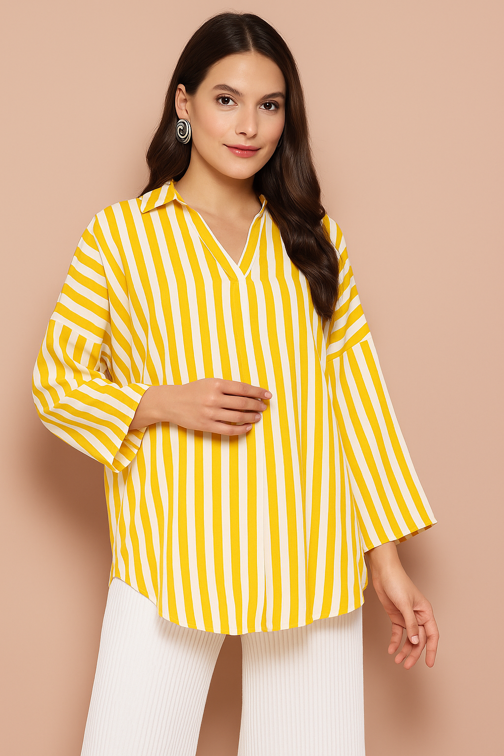 Striped Drop-Shoulder Wide Collar Top