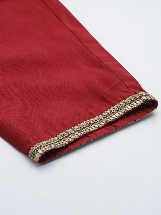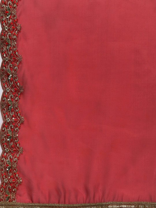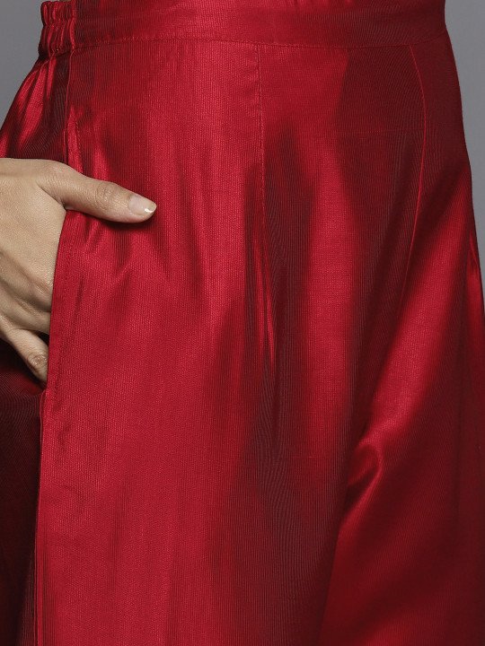 Indo Era Women Red Embroidered Sequinned Liva Kurta with Trousers & Organza Dupatta