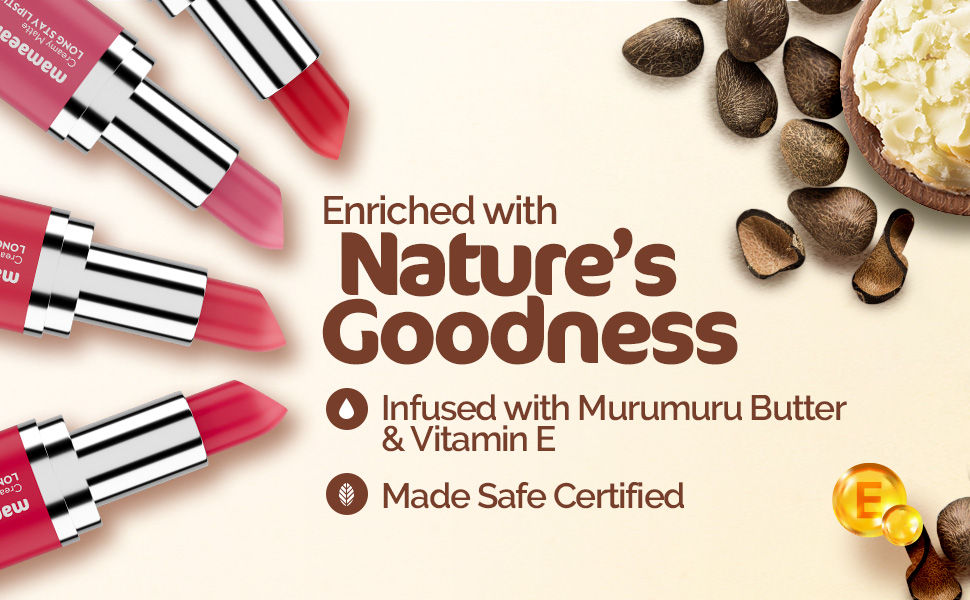 Get ready to pout with confidence! Mamaearth Creamy Matte Long Stay Lipstick is India’s 1st Made Safe Certified creamy matte lipstick, offering a smooth, velvety matte finish that lasts up to 8 hours without drying or flaking. Formulated with deeply nourishing Murumuru Butter from the Amazon rainforest and antioxidant-rich Vitamin E, it keeps your lips soothed, moisturized, and protected from pigmentation.