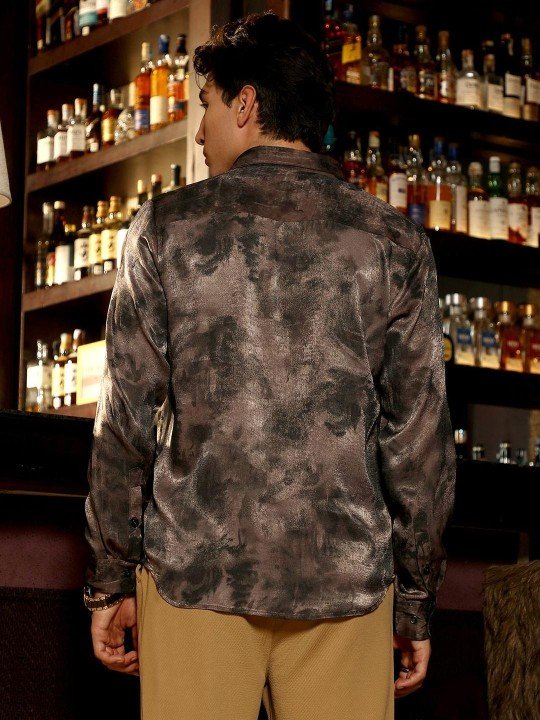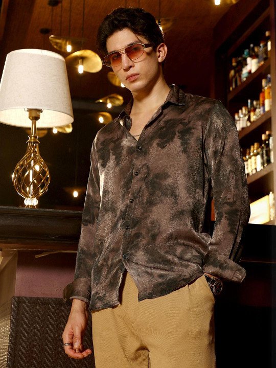 Stylish brown abstract print casual shirt for men