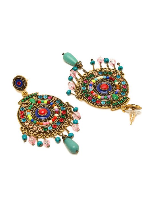 Multicoloured Contemporary Drop Earrings with Artificial Beads