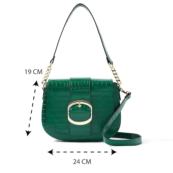 Ideal for casual outings, brunches, or day-to-day use, this green saddle sling bag blends fashion, practicality, and effortless charm.