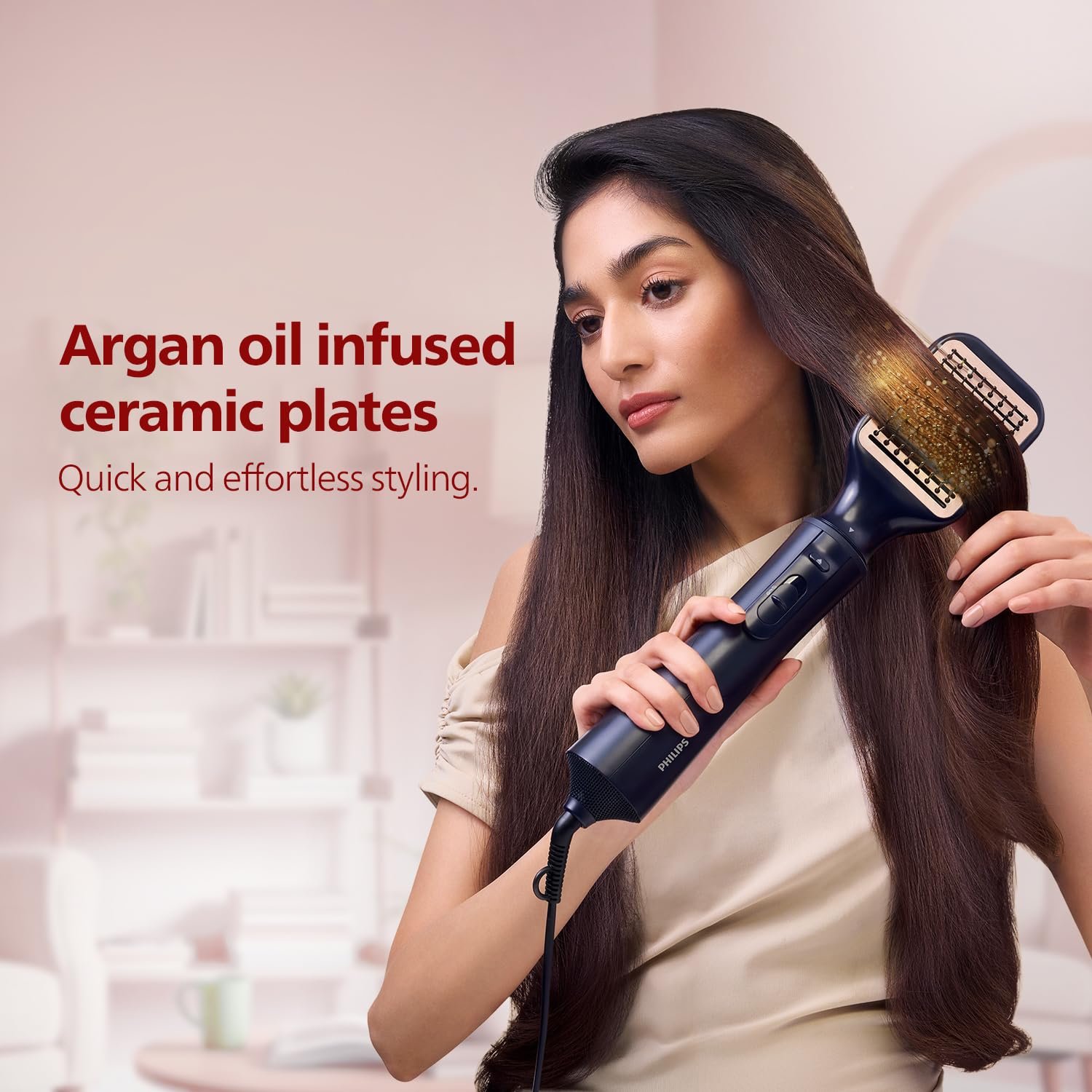 Philips 2-in-1 Airstyler – Volumizer & Blow Dryer Brush | 3X Volume, 50% Less Hair Breakage | Argan Oil Infused Plates