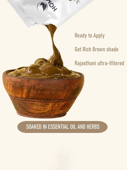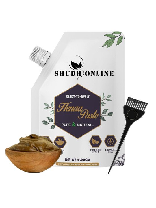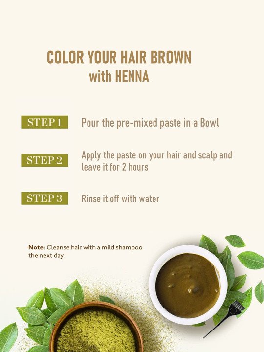 Infused with the richness of pure henna, this paste imparts a deep earthy greenish-brown shade, blending seamlessly with your natural hair color. Unlike chemical-based hair dyes, it is free from harsh additives, making it a gentle yet effective choice for maintaining scalp health.