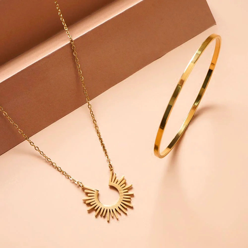 Sun Rays Necklace & Flat Wire Bangle Combo | Gold Plated Minimal Set – NestShobha