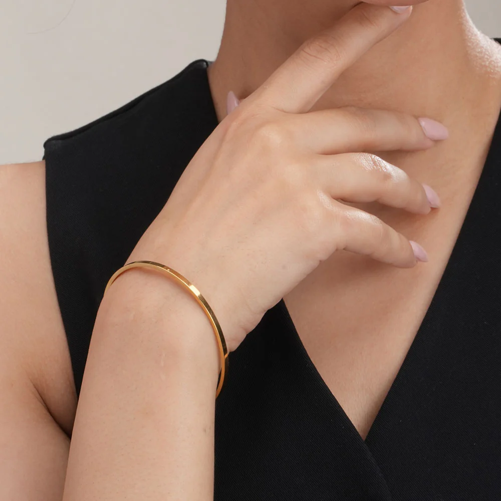 Paired with the sleek and modern Flat Wire Bangle, this set brings a harmonious blend of contemporary minimalism and graceful charm. With its waterproof and anti-tarnish properties, the combo offers longevity while remaining gentle on the skin.
