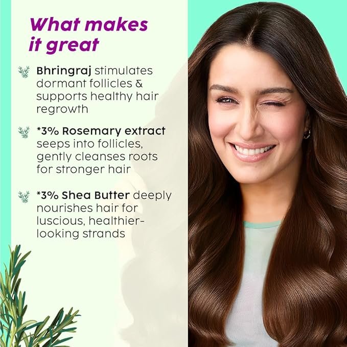 The rosemary oil penetrates deeply into the scalp, reducing hair fall and supporting stronger follicles. The sulphate-free shampoo ensures gentle cleansing without stripping natural oils, helping maintain softness, smoothness, and scalp health. The conditioner, enriched with shea butter, provides intense moisturization, prevents breakage, and nourishes the hair shaft to leave your strands visibly softer, smoother, and manageable.