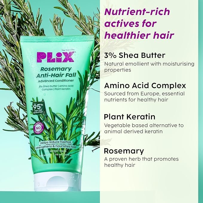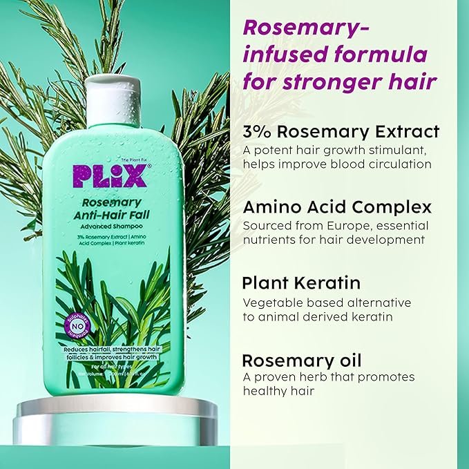 Experience advanced hair repair and hair fall control with The Plant Fix Plix Rosemary Hair Growth Advanced Oil, Shampoo & Conditioner Combo, created to nourish, strengthen, and revitalize your hair from root to tip. Powered by rosemary, a natural ingredient rich in antioxidants like rosmarinic acid and carnosic acid, this trio works effectively to improve blood circulation to the scalp, inhibit DHT, and promote healthier hair growth.