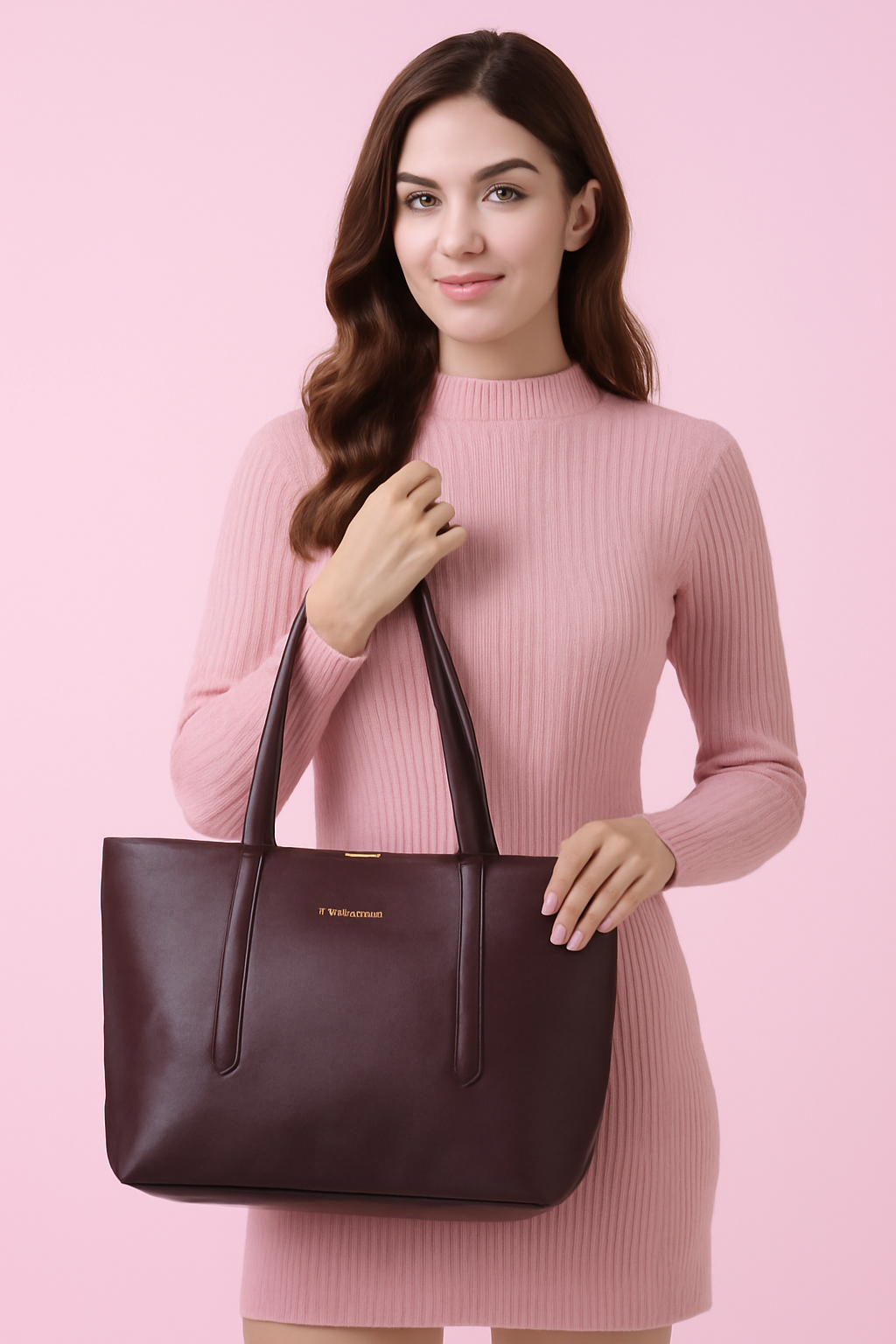 Designed with a roomy 5.5-liter capacity, the bag features a spacious main compartment, three inner pockets, and an exterior pocket to keep your essentials well-organized. The dual flat handles provide a comfortable grip, and the secure zip closure ensures your belongings are safely stowed away. Its deep maroon hue and sleek silhouette make it a versatile accessory, perfectly suited for both work and casual outings.